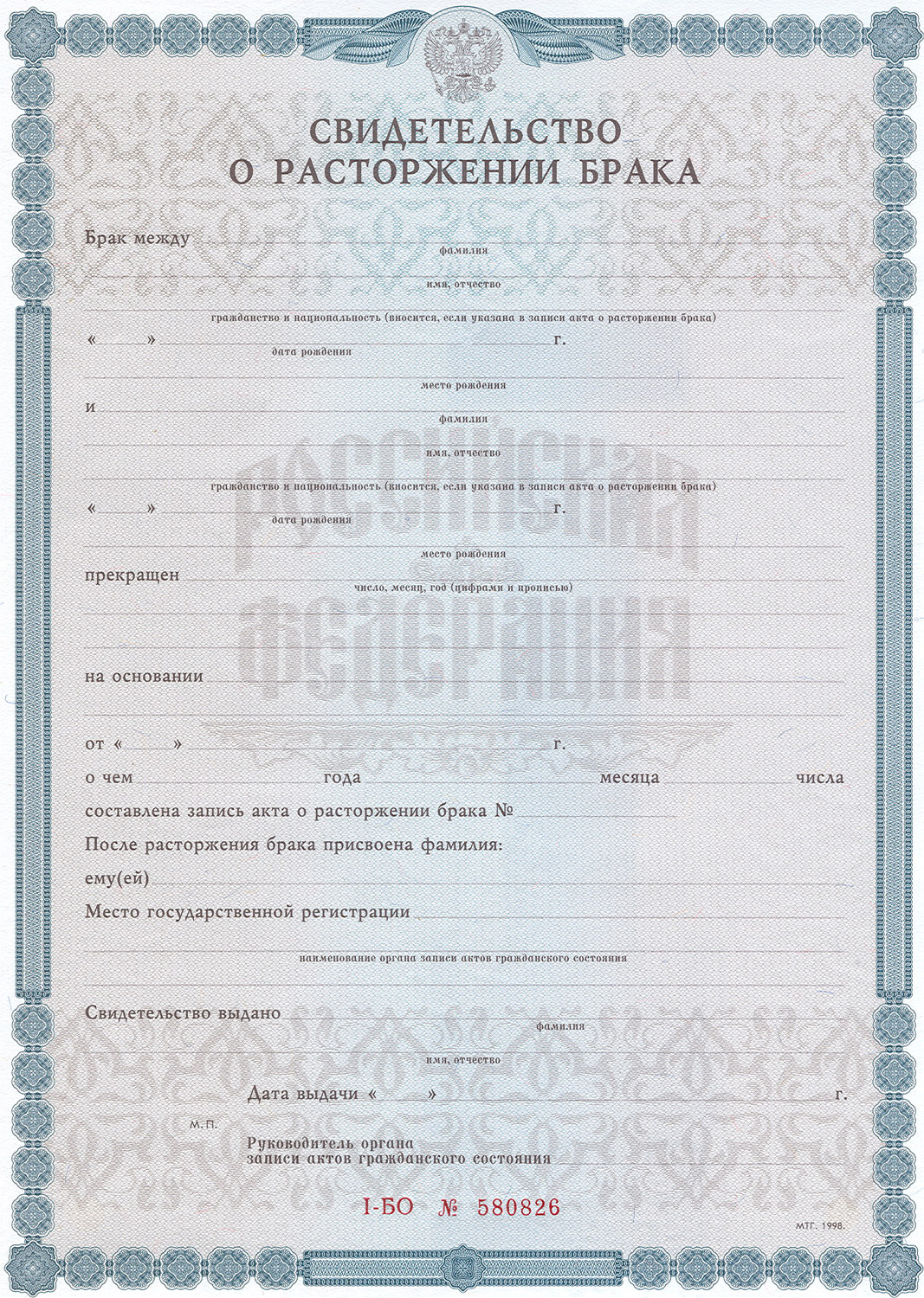 Свидетельство о расторжении брака